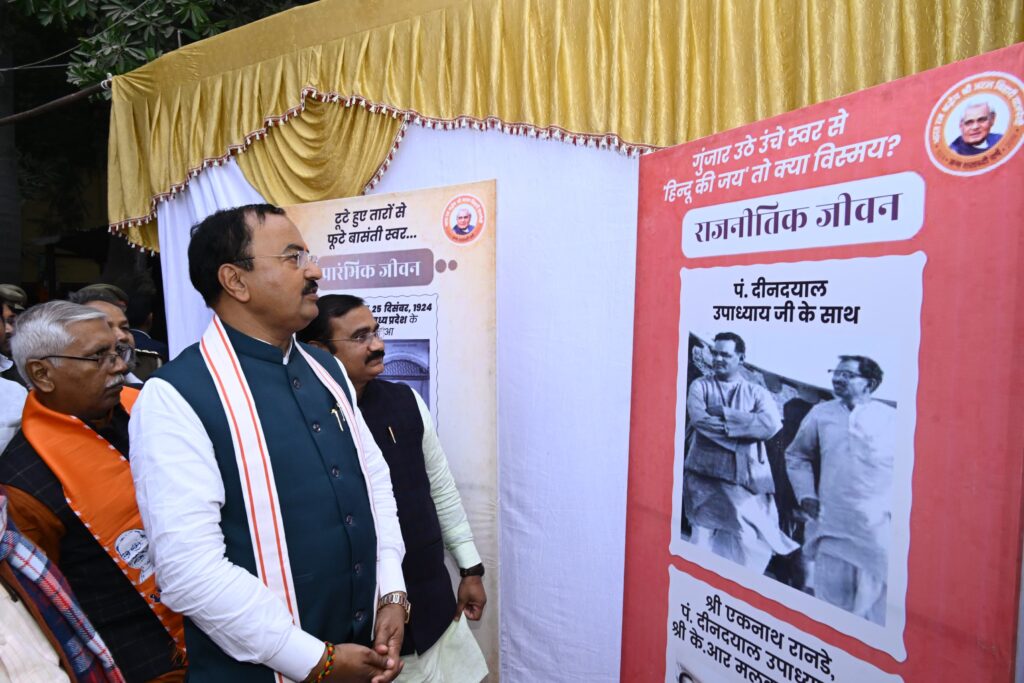 लखनऊ: 26 दिसम्बर, 2024 उत्तर प्रदेश के उप मुख्यमंत्री श्री केशव प्रसाद मौर्य ने अटल जी का जीवन और कार्यकाल हम सबके लिए एक प्रेरणा का स्रोत है। श्रद्धेय अटल जी महान राष्ट्रवादी विचारक, युग दृष्टा, प्रखर वक्ता व सुशासन के संवाहक थे। श्री केशव प्रसाद मौर्य बुधवार को वाराणसी के भारतीय शिक्षा मंदिर विद्यालय में आयोजित भारत रत्न श्रद्धेय श्री अटल बिहारी वाजपेयी जी की जन्म शताब्दी समारोह को सम्बोधित कर रहे थे। उन्होंने अटल जी के स्मृति चित्र पर पुष्पांजलि अर्पित का नमन किया तथा उनके जीवन से जुड़ी प्रदर्शनी का उद्घाटन कर अवलोकन किया । उप मुख्यमंत्री श्री केशव प्रसाद मौर्य ने कहा कि अटल जी की कविताएं, उनकी जीवन गाथा, पूरे देश के लिए प्रेरणास्रोत है। उन्होंने जो आधारशिला रखी थी, देश के यशस्वी प्रधानमंत्री मा श्री नरेन्द्र मोदी जी के नेतृत्व में उसी आधार शिला पर देश का नव निर्माण हो रहा है। उन्होंने अटल जी के जीवन संस्मरणों की याद ताजा करते हुए उनके सिद्धांतों को आत्मसात करने की आवश्यकता पर बल दिया। कहा कि यह वर्ष अटल जी का जन्म शताब्दी वर्ष है। उन्होंने कहा कि सुशासन के लक्ष्यों को कैसे प्राप्त किया जा सकता है यह अटल जी ने करके दिखाया था, इसीलिए उनके जन्मदिन को सुशासन दिवस के रूप में मनाया जा रहा है। श्री केशव प्रसाद मौर्य बुधवार को ही लखनऊ स्थित दिलकुशा लॉन में श्रद्धेय अटल बिहारी वाजपेई जी के जन्म शताब्दी अवसर पर आयोजित स्वास्थ्य मेले के कार्यक्रम में सम्मिलित हुए। उन्होंने आयोजित कार्यक्रम में साइकिल वितरण, मोबाइल वितरण व विभिन्न प्रकार के इलाज से संबंधित कैंपों का अवलोकन भी किया। आयोजित स्वास्थ्य मेले में दिव्यांग जनों को साइकिल व लोगों को मोबाइल वितरित कर विभिन्न प्रकार के इलाज से संबंधित कैंपों का अवलोकन भी किया।