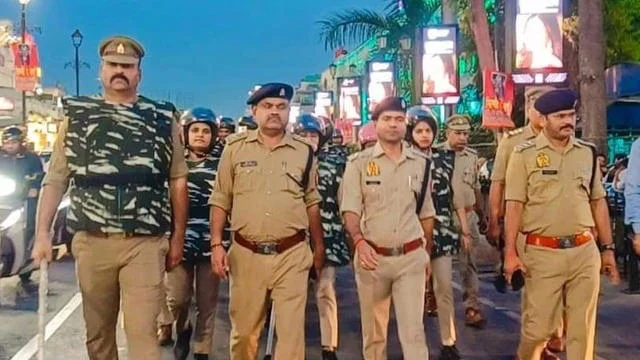 ईद और नवरात्रि पर अलर्ट मोड में यूपी पुलिस, लखनऊ में फ्लैग मार्च तेज