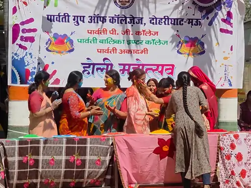 मऊ के दोहरीघाट के पार्वती पीजी कॉलेज में होली महोत्सव का आयोजन किया गया। इस अवसर पर छात्र-छात्राओं, शिक्षकों और कर्मचारियों ने उत्साहपूर्वक भाग लिया। सभी ने एक-दूसरे को गुलाल लगाकर होली की शुभकामनाएं दीं। कार्यक्रम का शुभारंभ सरस्वती वंदना से हुआ। इसके बाद छात्र-छात्राओं ने रंगारंग सांस्कृतिक प्रस्तुतियां दीं। होली गीतों पर नृत्य और पारंपरिक फाग गीतों पर ढोल की थाप ने माहौल को जीवंत बना दिया। कॉलेज परिसर गुलाल के रंगों से भर गया।