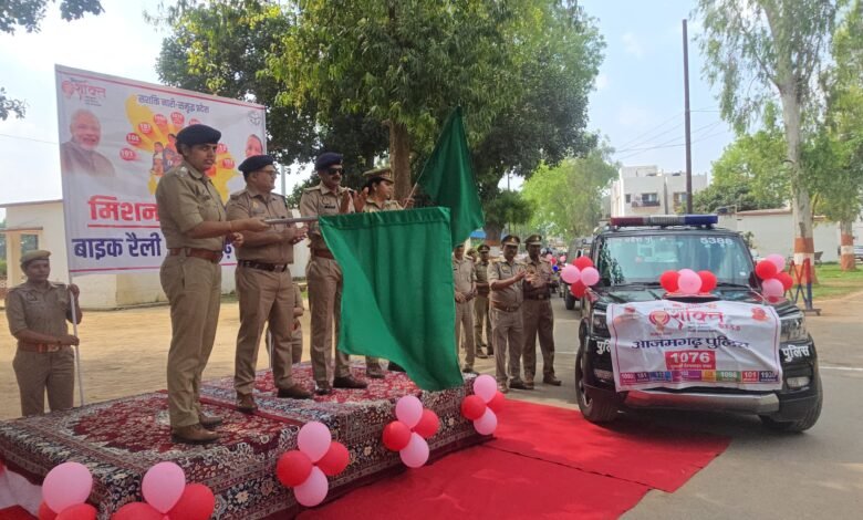 आजमगढ़ 28 मार्च (आर एन एस)मा0 मुख्यमंत्री जी, उत्तर प्रदेश सरकार द्वारा महिलाओं एवं बालिकाओं की सुरक्षा, सम्मान एवं स्वावलंबन को बढ़ावा देने के उद्देश्य से संचालित मिशन शक्ति फेज-5.0 (द्वितीय चरण) के अंतर्गत आज दिनांक- 28.03.2026 जनपद आजमगढ़ में महिला पुलिस बाइक रैली का भव्य आयोजन किया गया। क्षेत्राधिकारी सदर आस्था जायसवाल एवं महिला थानाध्यक्ष प्रज्ञा सिंह द्वारा पुलिस लाइन, आजमगढ़ से रैली को हरी झंडी दिखाकर रवाना किया गया।