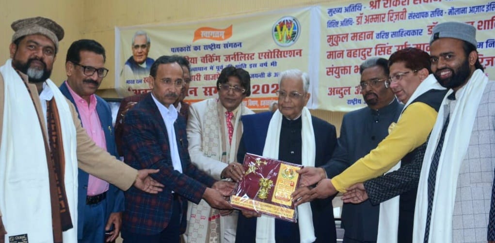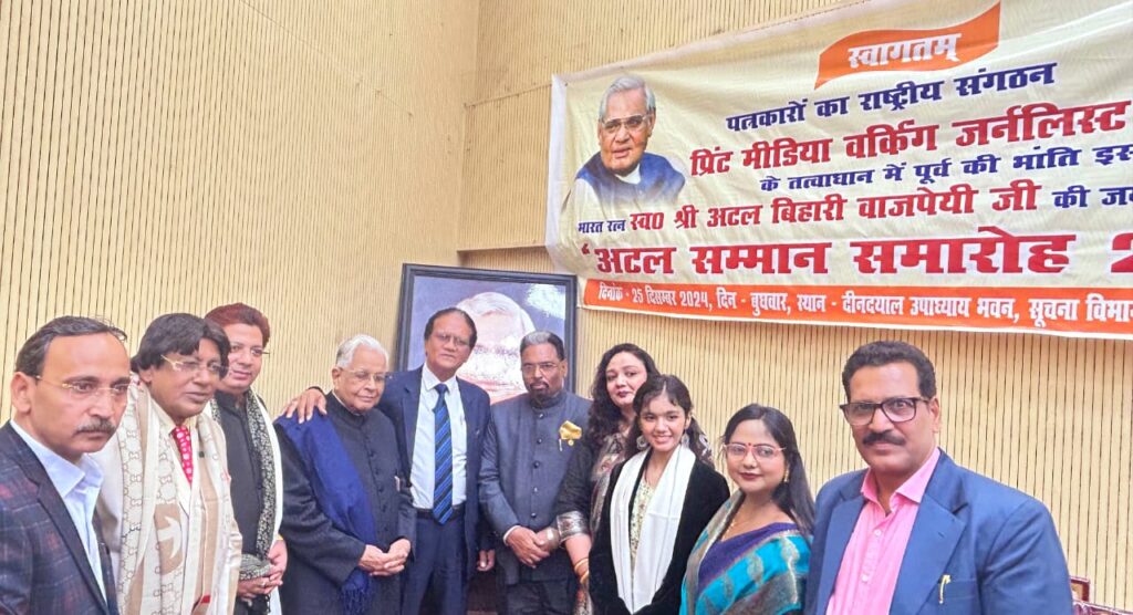लखनऊ।पूर्व प्रधानमंत्री भारत रत्न स्वo अटल बिहारी बाजपेई जी की जन्म शताब्दी पर पण्डित दीन दयाल उपाध्याय सूचना भवन के सभागार में पांचवें अटल रत्न सम्मान समारोह 2024 का भव्य आयोजन संपन्न हुआ।प्रिंट मीडिया वर्किंग जर्नलिस्ट एसोसिएशन के राष्ट्रीय अध्यक्ष अज़ीज़ सिद्दीकी तथा निहारिका साहित्य मंच की संस्थापिका/अध्यक्ष डॉo रीमा सिन्हा जोकि पत्रकारों की आवाज़ बुलन्द करने के साथ साथ साहित्यकारों कलमकारों डॉक्टरों तथा समाजसेवियों को सम्मानित करने के लिए भी मशहूर हैं।लगातार पांचवीं बार अटल रत्न सम्मान समारोह आयोजित करने वाले प्रिंट मीडिया वर्किंग जर्नलिस्ट एसोसिएशन के राष्ट्रीय अध्यक्ष अज़ीज़ सिद्दीकी ने इस बार भी बड़े ही भव्य तरीक़े से सूचना एवं जनसंपर्क विभाग उत्तर प्रदेश के सभागार में भारत रत्न पूर्व प्रधानमंत्री स्वo अटल बिहारी वाजपेई जी की जयन्ती के अवसर पर पांचवें अटल सम्मान समारोह 2024 का भव्य आयोजन किया।जहां लखनऊ ही नहीं देश-विदेश से कई प्रख्यात साहित्यकारों, चिकित्सकों, समाजसेवियों और पत्रकारों को “अटल सम्मान” से सम्मानित किया गया।समारोह में मुख्य अतिथि के रूप में सीनियर नेता अम्मार रिज़वी, तथा लखनऊ की पूर्व मेयर संयुक्ता भाटिया, मौजूद रहे।अति विशिष्ट अतिथि के रूप में पूर्व कस्टम अधिकारी निगहत खान प्रख्यात साहित्यकार डॉo सुल्तान शाकिर हाशमी, सुप्रसिद्ध होम्योपैथिक चिकित्सक डॉक्टर उमंग खन्ना, फिल्म निर्माता निर्देशक मान बहादुर सिंह मान, भाजपा नेत्री फराह रिज़वी, प्रिंट मीडिया वर्किंग जर्नलिस्ट एसोसिएशन के मुख्य संरक्षक आजाद हाफिज, राष्ट्रीय सलाहकार अब्दुल वहीद और जुबेर अहमद,सैय्यद गुलाम हुसैन – राष्ट्रीय सलाहकार,जमील मलिक प्रदेशाध्यक्ष,शादाब रजा,मो. इकराम (गुड्डु),डॉ वरूणा वर्मा – हृदयरोग विशेषज्ञ (सर्जन)जावेद बेग रॉयल होटल ग्रुप के चेयरमैन मुरलीधर आहूजा, इमरान कुरैशी , तथा आरिफ़ कुरैशी उपस्थित रहे।विशिष्ट अतिथियों के रूप में लोहिया हॉस्पिटल के डायरेक्टर डॉ सी.एम सिंह, सिविल अस्पताल के निदेशक राजेश कुमार, बलरामपुर अस्पताल के वरिष्ठ सर्जन डॉo सम्मद्धर, डॉo ए.के गुप्ता, डफ़रिन हॉस्पिटल की डायरेक्टर डॉक्टर मधु गोढ़वाल, प्रख्यात शायर मोहम्मद साहिल, वरिष्ठ समाजसेवी कुदरत उल्ला खां, मुर्तजा अली, शाकिब भारत,शहज़ादे कलीम, तौसीफ़ अहमद, एड.सलाहुद्दीन उर्फ शीबू, वामिक खान,अनवर आलम, राकेश चौहान, समाजसेवी वी.बी पाण्डे, मुश्ताक बेग, शबाब नूर,आसिम मार्शल, एहसन रईस, सैयद गुलाम,तनवीर रज़ा खान, तथा लखनऊ एवं देश के कई शहरों से और विदेश जैसे कि अमेरिका, कनाडा, नेपाल, दुबई, से आए हुए कई गणमान्य लोग उपस्थित रहे।