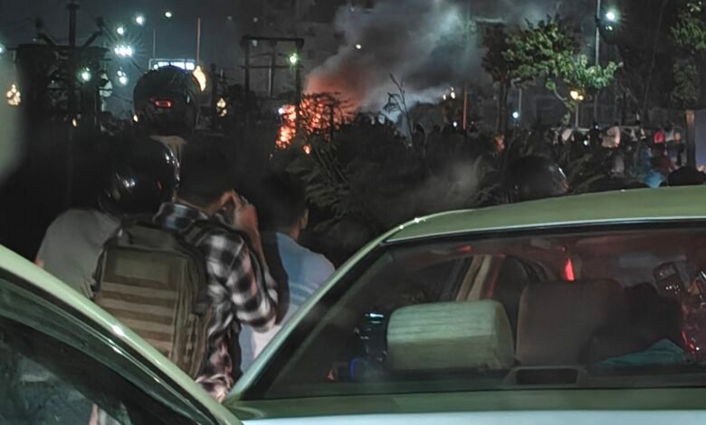 लखनऊ: शहीद पथ पर धूं-धूं कर जली कार, इकाना स्टेडियम और पुलिस मुख्यालय के पास लगा भीषण जाम