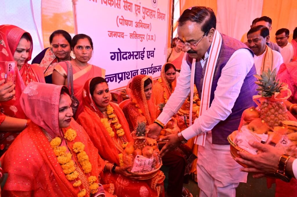 कार्यक्रम के दौरान माननीय उप मुख्यमंत्री जी ने नन्हें बच्चों का अन्नप्राशन संस्कार भी संपन्न कराया तथा गर्भवती महिलाओं को पोषाहार का वितरण किया। उन्होंने कहा कि मातृ एवं शिशु स्वास्थ्य सरकार की प्राथमिकताओं में शामिल है और पोषण अभियान के माध्यम से बच्चों तथा माताओं के बेहतर स्वास्थ्य के लिए निरंतर कार्य किया जा रहा है। माननीय उप मुख्यमंत्री जी ने अपने संबोधन में कहा कि प्रधानमंत्री श्री नरेन्द्र मोदी जी के नेतृत्व में तथा मुख्यमंत्री योगी आदित्यनाथ जी के मार्गदर्शन में उत्तर प्रदेश सरकार ग्रामीण विकास, महिला सशक्तिकरण और गरीब कल्याण के लिए अनेक योजनाएं संचालित कर रही है। स्वयं सहायता समूहों को आर्थिक रूप से मजबूत बनाकर उन्हें आत्मनिर्भर बनाने की दिशा में लगातार प्रयास किए जा रहे हैं।