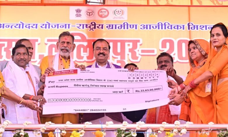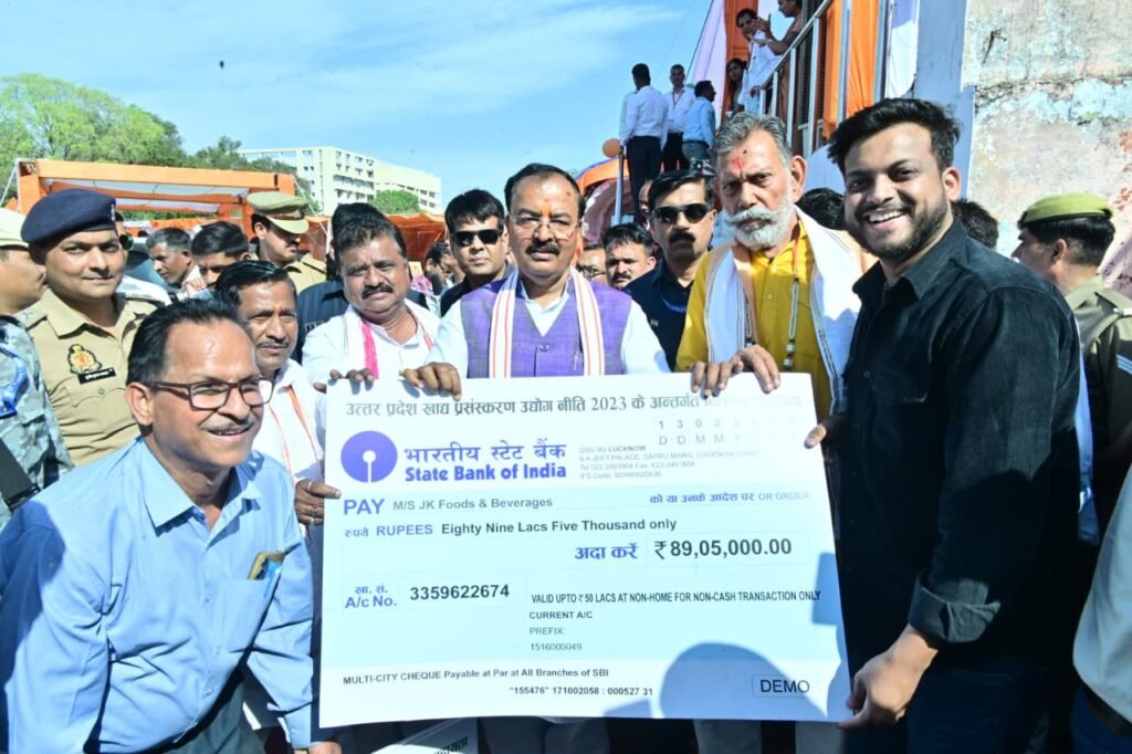 प्रमुख उपलब्धियां और वितरण: • महिला सशक्तिकरण (NRLM): उपमुख्यमंत्री ने उत्तर प्रदेश राज्य ग्रामीण आजीविका मिशन के अंतर्गत 2242 स्वयं सहायता समूहों (SHGs) को 33 करोड़ 63 लाख रुपये का बैंक ऋण आवंटित किया। उन्होंने स्वयं सहायता समूह की दीदियों को प्रतीकात्मक चेक प्रदान कर उनके आर्थिक स्वावलंबन की सराहना की। • कृषि विकास (ट्रैक्टर वितरण): ‘मुख्यमंत्री युवा उद्यमी विकास अभियान’ के तहत किसानों और युवाओं को सशक्त बनाने के लिए उपमुख्यमंत्री ने हरी झंडी दिखाकर ट्रैक्टरों की रैली को रवाना किया। उन्होंने लाभार्थियों को ट्रैक्टर की चाबियां भी सौंपी। • खाद्य प्रसंस्करण: उत्तर प्रदेश खाद्य प्रसंस्करण उद्योग नीति 2023 के अंतर्गत, उन्होंने M/S JK Foods & Beverages को 89 लाख 05 हजार रुपये का अनुदान चेक प्रदान किया, जिससे स्थानीय स्तर पर रोजगार के नए अवसर सृजित होंगे।