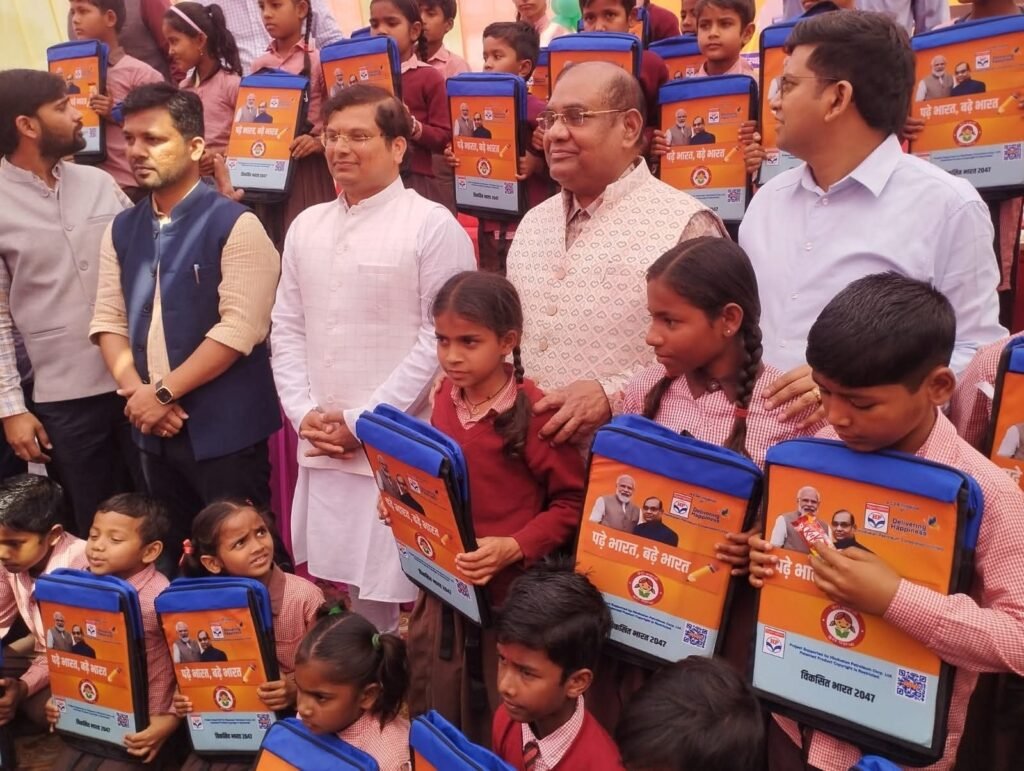 सांसद बृजलाल ने कलेक्ट्रेट परिसर में लाइब्रेरी भवन का शिलान्यास एवं सरकारी स्कूल के बच्चों कों किताब बैग बाटें