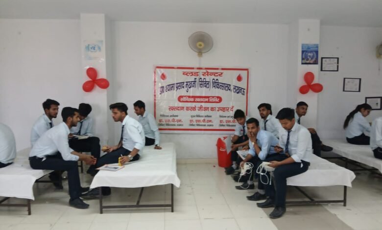 सिविल चिकित्सालय रक्तकेंद्र की टीम ने आज बंसल इंस्टीट्यूट आफ इंजीनियरिंग एंड टेक्नोलॉजी में हरिओम सेवा केंद्र के सहयोग से आयोजित रक्तदान शिविर में 108 यूनिट रक्तदान कराया